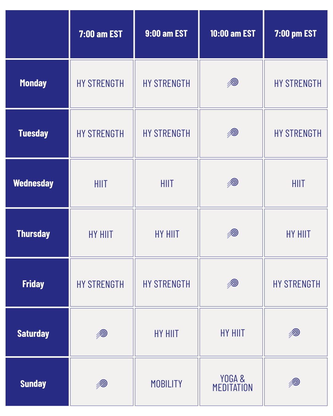 Bryan has earned his NASM, Group Fitness, Perfect Posture Pilates, and Reiki certifications. He will be coaching HY Strength and HY HIIT.